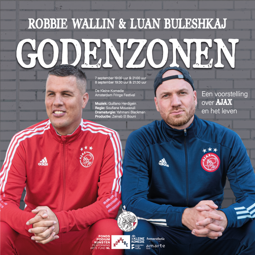 In de veelzijdige voorstelling ‘Godenzonen’ fungeert Ajax als metafoor om maatschappelijke vraagstukken bespreekbaar te maken en het gesprek gaande te houden. De jonge makers Robbie Wallin & Luan Buleshkaj slaan een nieuwe weg in door spoken word, storytelling, muziek, comedy en theater te combineren. Emotionele eerbetonen worden afgewisseld met humoristische anekdotes en scherpe blikken.